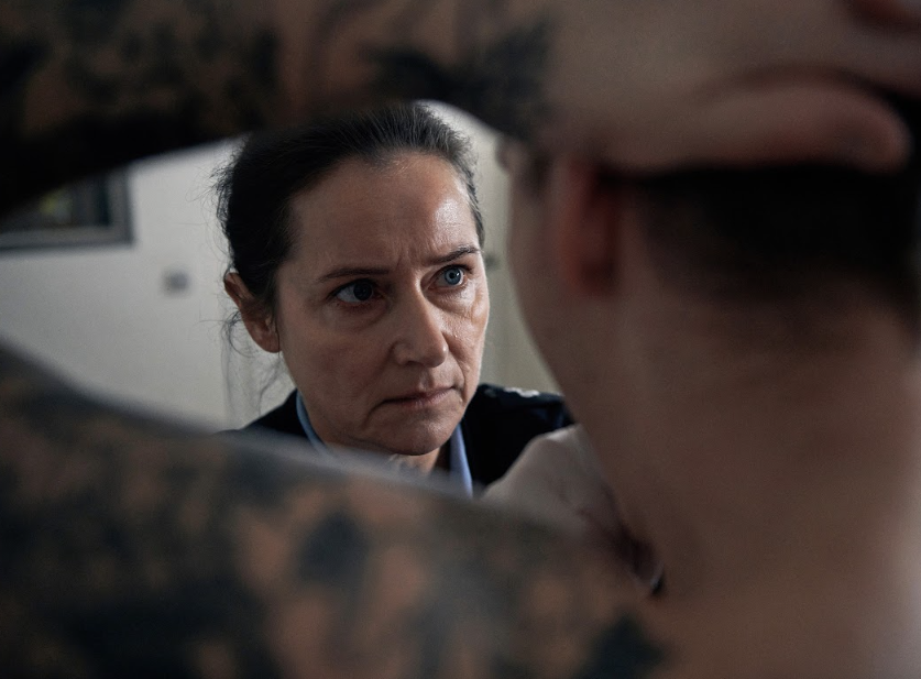 Verdade. Não conhecemos Eva sem uniforme. Onipresente na tela, a vemos oscilando entre o poder institucional da prisão e da autoridade, e o poder emocional que é exercido na segunda metade do filme. A relação de Eva com Mikkel entra no campo privado e o que vem à tona é o paradoxo o tempo todo. Na primeira camada, a maternidade no amor e no medo, no afeto e na rejeição; mais profundamente, vemos os polos opostos em que a humanidade está calcada, de reabilitação e redenção. Sempre trabalhamos com extremos e rótulos, eliminando as especificidades que nos fazem diferente e plurais; silenciando as diferenças que nos completam e enfatizando o quanto somos definidos por prisões psicológicas em que nos metemos.